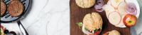 Χωρίστε το κρέας σε τέσσερα κομμάτια, πλάστε κάθε κομμάτι σε μια μπάλα, ισιώστε την ώστε να είναι ελαφρώς μεγαλύτερη από τα ψωμάκια. Σε ένα μικρό μπολ, αναμίξτε τη σάλτσα Α1, τη Γούστερ σως και τη σάλτσα ντομάτας -προσθέτοντας τόσο από το καθένα κατά βούληση- και στη συνέχεια ρίξτε μέσα τα ψιλοκομμένα κρεμμυδάκια εσαλότ, ανακατέψτε και αφήστε στην άκρη.Προθερμάνετε μια μεγάλη πλάκα ψησίματος ή ένα μεγάλο τηγάνι για περίπου 4 λεπτά σε υψηλή θερμοκρασία. Μειώστε την ένταση στο μέτριο. Βάλτε τα μπιφτέκια στην πλάκα ψησίματος ή στο τηγάνι και χρησιμοποιώντας μια σπάτουλα πατήστε τα ελαφρώς προς τα κάτω φροντίζοντας το μπιφτέκι να είναι σε πλήρη επαφή με την επιφάνεια. Ψήστε τα ανάλογα με την προτίμησή σας για 3 ή 4 λεπτά από κάθε πλευρά. Κόψτε στη μέση τα ψωμάκια, τοποθετήστε τα σε ένα ταψί και ζεστάνετέ τα στον φούρνο για περίπου 8-10 λεπτά. Για να στήσετε τα τσίζμπεργκερ σας, απλώστε τη σάλτσα με τα κρεμμυδάκια εσαλότ πάνω στο κάτω ψωμάκι, προσθέστε μερικές φέτες τραγανό μήλο και στη συνέχεια το μπιφτέκι και ένα ωραίο κομμάτι μπλε τυριού. Ολοκληρώστε με λίγο νεροκάρδαμο και σερβίρετε αμέσως.