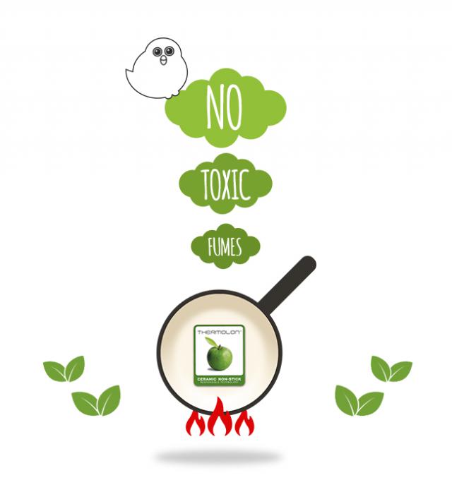 Το Thermolon™ είναι ανθεκτικό στις υψηλές θερμοκρασίες (μέχρι και 450°C). Έτσι, εαν το σκεύος σας* υπερθερμανθεί απρόβλεπτα, δεν θα φουσκώσει, ούτε θα απελευθερωθούν τοξικές αναθυμιάσεις.