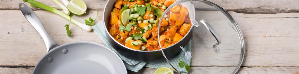 Healthy cooking has a name, GreenPan. As the inventors of healthy ceramic non-stick cookware, GreenPan is the trusted go-to brand for non-toxic, easy to clean and easy to use pots and pans. Never releasing any harmful fumes or persistent pollutants, we pride ourselves on being free of PFOA, PFAS, lead and cadmium. Create healthy meals with confidence with GreenPan.