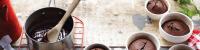 Préchauffez le four à 200 °C. Beurrez 4 ramequins. Hachez le chocolat et faites-le fondre à feu très doux dans une casserole. Mélangez jusqu’à obtention d’une texture lisse et réservez au chaud. Ébouillantez le lait dans une casserole de taille moyenne. Dans un grand bol, battez au mixeur électrique les jaunes d’œuf et 4 cuillères à soupe de sucre jusqu’à obtention d’une consistance pâle et mousseuse. Incorporez la farine et battez jusqu’à ce que le mélange soit homogène. Versez lentement la moitié du lait chaud et continuez de mélanger. Versez le mélange et le reste de lait dans la casserole. Portez à ébullition à feu moyen-vif tout en remuant constamment. Faites cuire encore 2-3 minutes et incorporez le chocolat fondu avec un fouet. Dans un grand bol, battez les blancs d’œuf et la crème de tartre (bitartrate de potassium) jusqu’à la formation de pics mous.Ajoutez progressivement les 2 cuillères à soupe de sucre restantes. Battez jusqu’à obtention de pics fermes. Versez ¼ des blancs d’œuf dans le mélange à base de chocolat et fouettez vigoureusement jusqu’à obtention d’une consistance lisse. Incorporez rapidement les blancs d’œuf restants et mélangez bien. Versez dans les ramequins. Faites cuire 15 minutes à 200 °C. Réduisez la chaleur à 180 °C et faites cuire 10 minutes supplémentaires. Servez immédiatement.